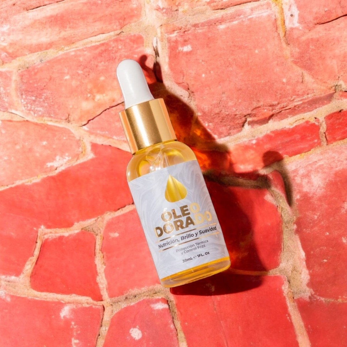 - Protección térmica y anti-frizz: El Óleo Dorado protege tu cabello del calor hasta 450°F (230°C) y sella la hidratación.